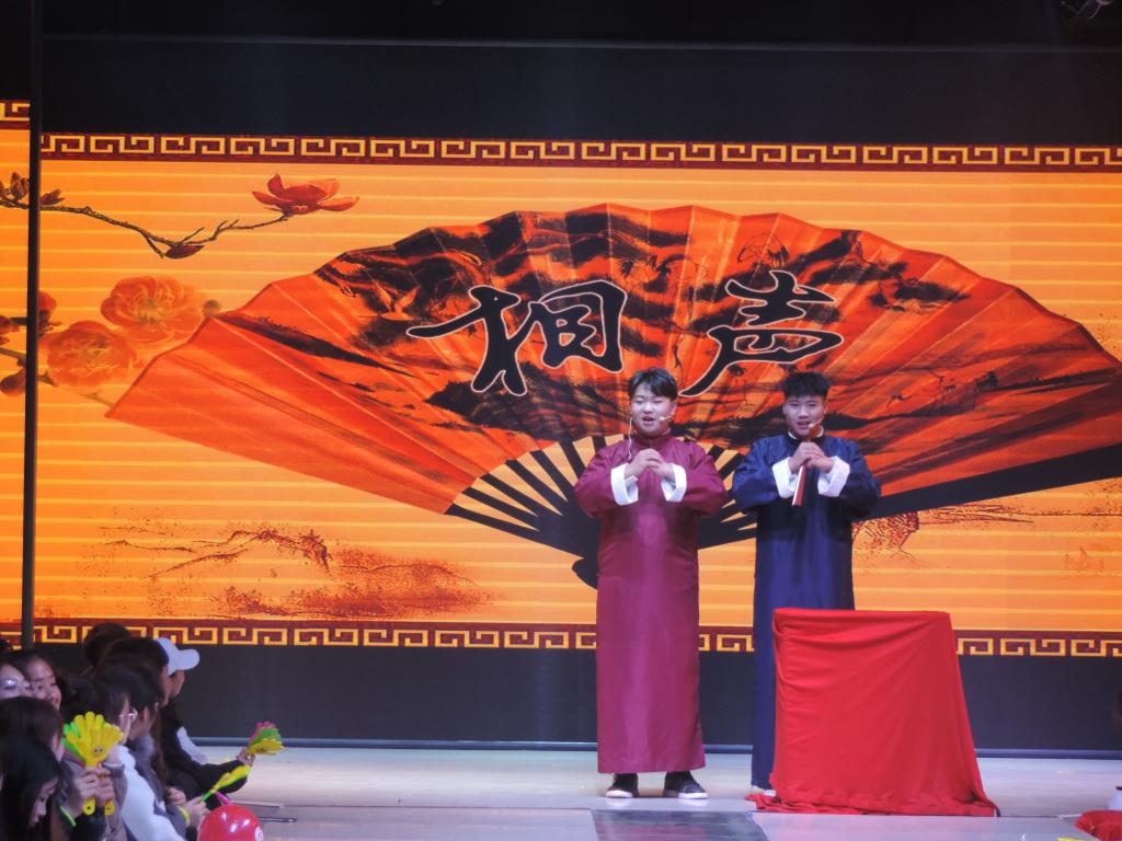 晚会上,节目精彩纷呈,演出人员全力以赴,为观众带来一场文艺盛宴。开场舞《屋顶着火》热情洋溢,热炸全场。歌曲《稻香》鼓舞2019级新生不忘初心,实现梦想。小品《上学那点儿事》演绎了大学生在日常生活中发生的趣事,全场搞笑包袱横飞。相声《成语新说》为观众们送来新年的欢笑声,博得阵阵掌声和喝彩。轻盈的水袖,曼妙的舞姿,古典舞《知否知否》一展柔情,让传统文化在心中扎根。诗朗诵《我的祖国》以诗歌赞礼祖国,莘莘学子用深情朗诵抒发了对祖国的热爱和对青春的憧憬,体现了服装青年以爱国之心、诉青春理想的良好精神面貌。晚会期间,更有2019级全体教官带来的节目《抖肩舞》将晚会带入高潮。整场晚会座无虚席,气氛热烈。