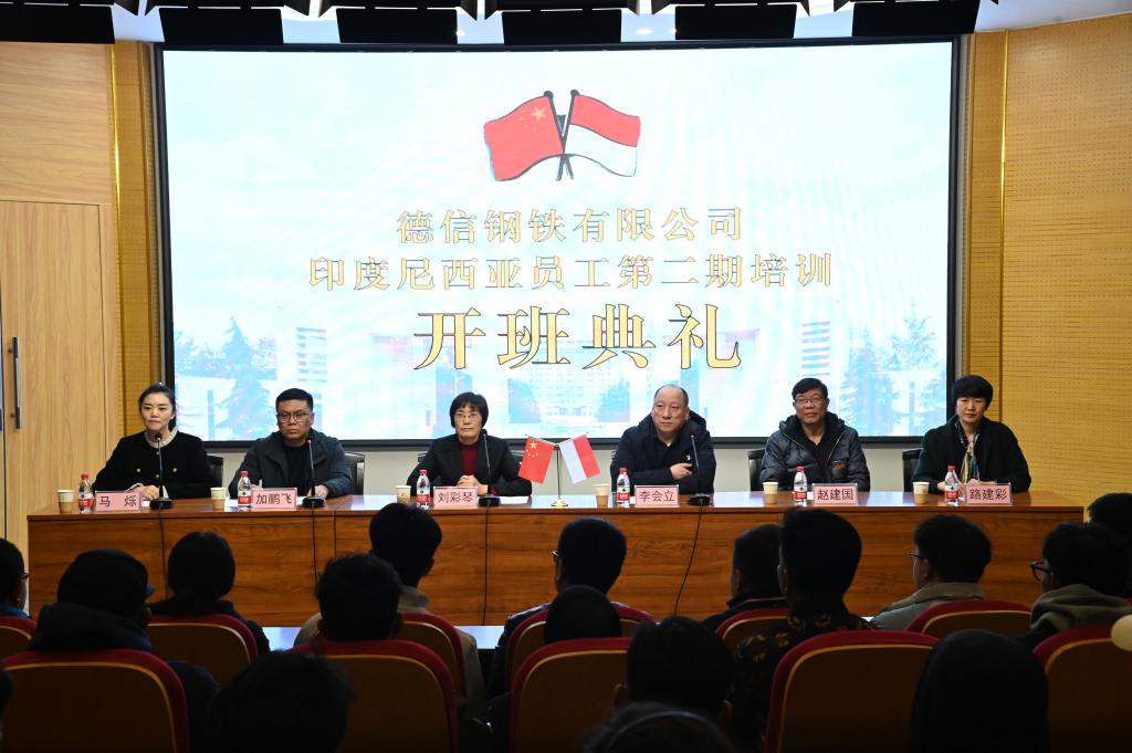 3月8日上午,德信钢铁有限公司印度尼西亚员工第二期培训开班典礼在best365图书馆学术报告厅举行。校党委书记刘彩琴,德润人力公司负责人李会立,best365资环系、基础部、继教部和国际交流中心相关领导、老师以及50名来自印度尼西亚的培训学员共同参加了此次典礼。典礼由best365国际交流中心主任马烁主持。