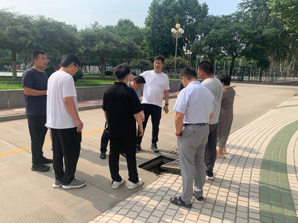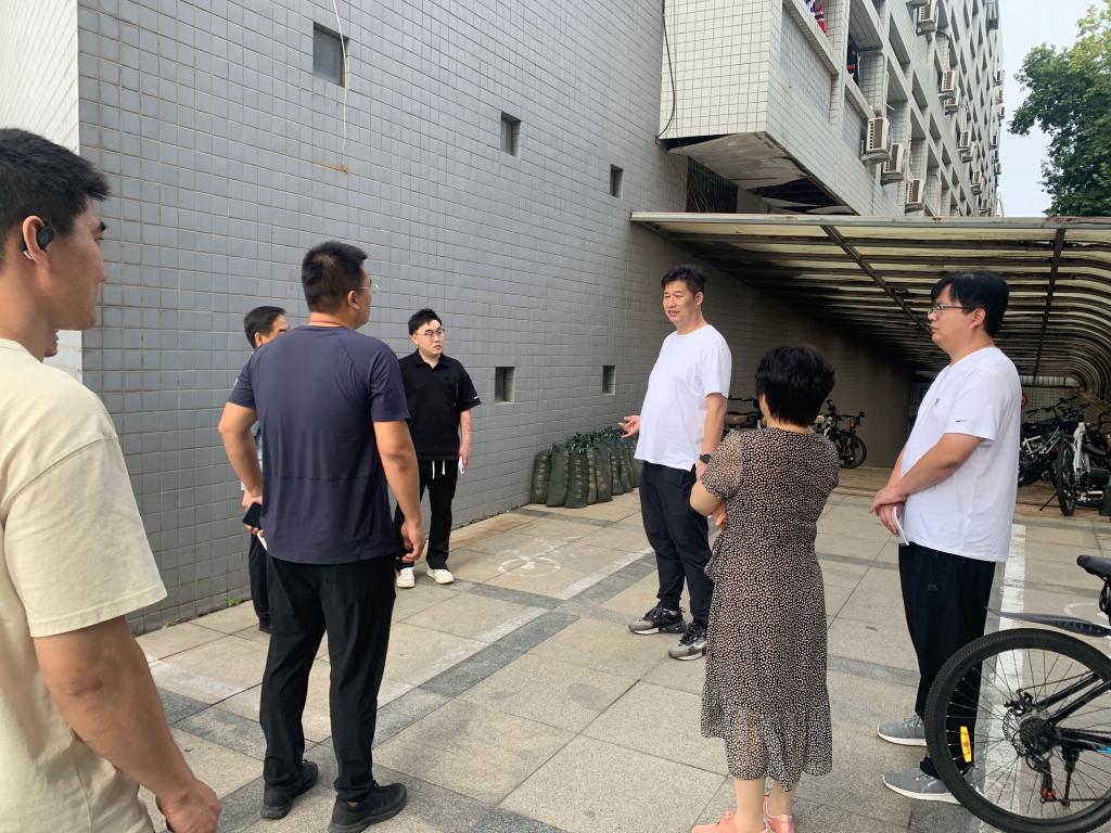 为有效应对今年严峻复杂的防汛形势,做好校园防汛工作,7月17日,学校后勤管理处处长李磊带领各科室负责人及防汛相关工作人员检查校园防汛准备工作。