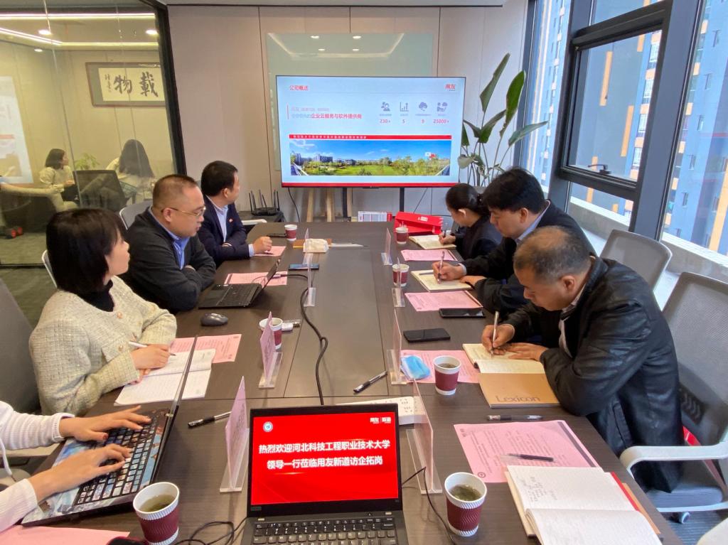 为拓展毕业生就业渠道和就业资源,助力毕业生高质量精准就业,深入推进访企拓岗促就业工作,3月30日,会计系党总支书记石磊、主任曹新锋一行四人赴石家庄走访河北九赋软件技术有限公司和用友新道有限公司。