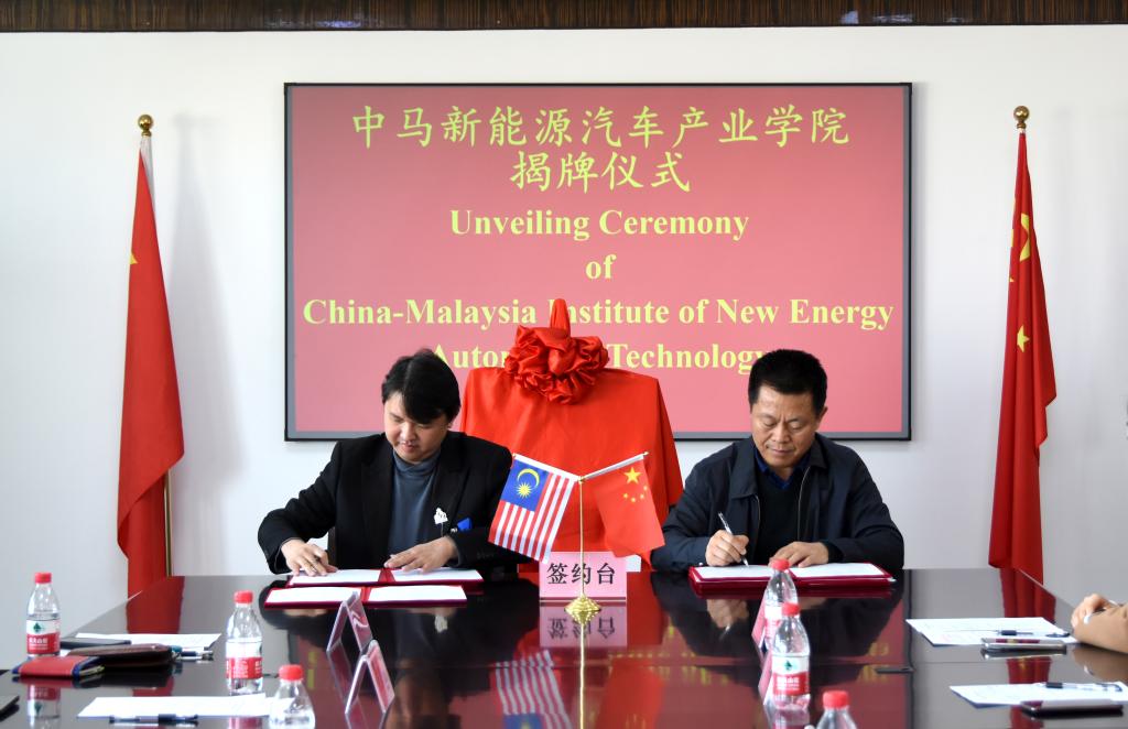 会上,马东霄和李泉氚分别代表两校签署双方合作备忘录,并共同为中马新能源汽车产业学院揭牌。未来,双方将在师资培训、学生培养等方面开展更多合作。