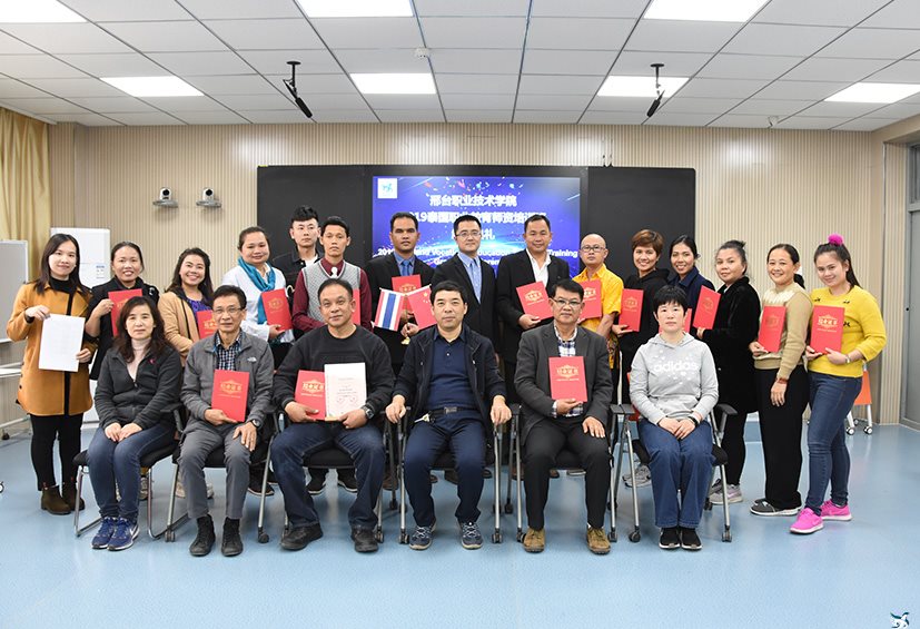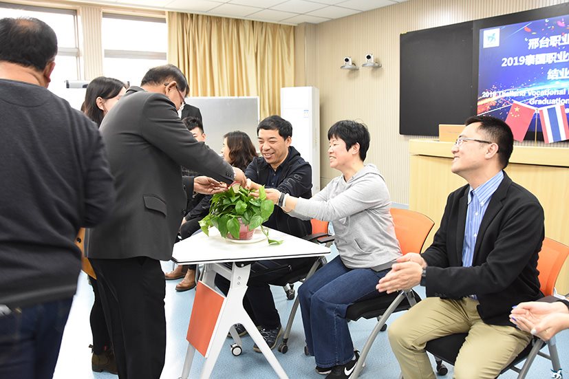 4月19日,由我院举办的泰国职业教育师资高级研修班举行结业典礼。我院副院长李贤彬、机电工程系主任高英敏、艺术与传媒系主任杨志红、学院办公室副主任魏伟等领导,泰国职业教育委员高级官员、职业技术学院院领导和一线专业教师等16人参加典礼。