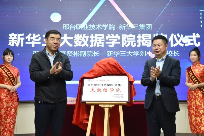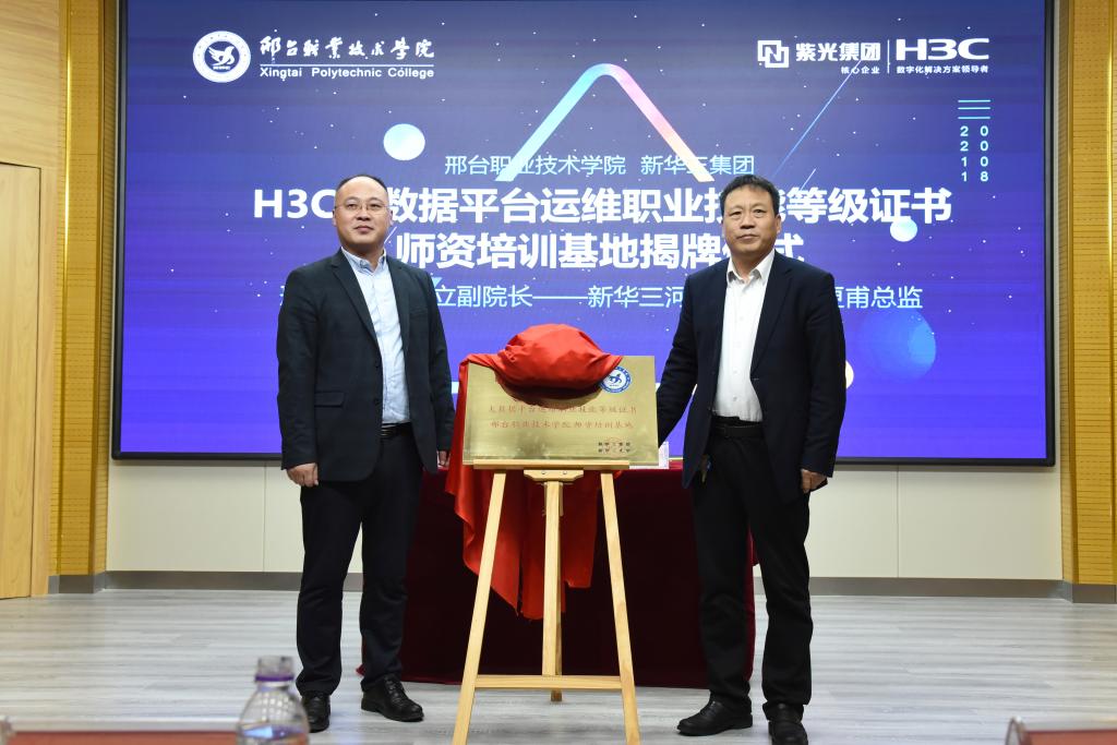 在与会人员的见证下,双方隆重举行了“邢台职技·新华三大数据学院”和“邢台职技·新华三大数据平台运维职业技能等级证书师资培训基地”揭牌仪式。河北省电子信息职教集团秘书长王喜年讲话,对我院与新华三集团达成此次合作表示祝贺。