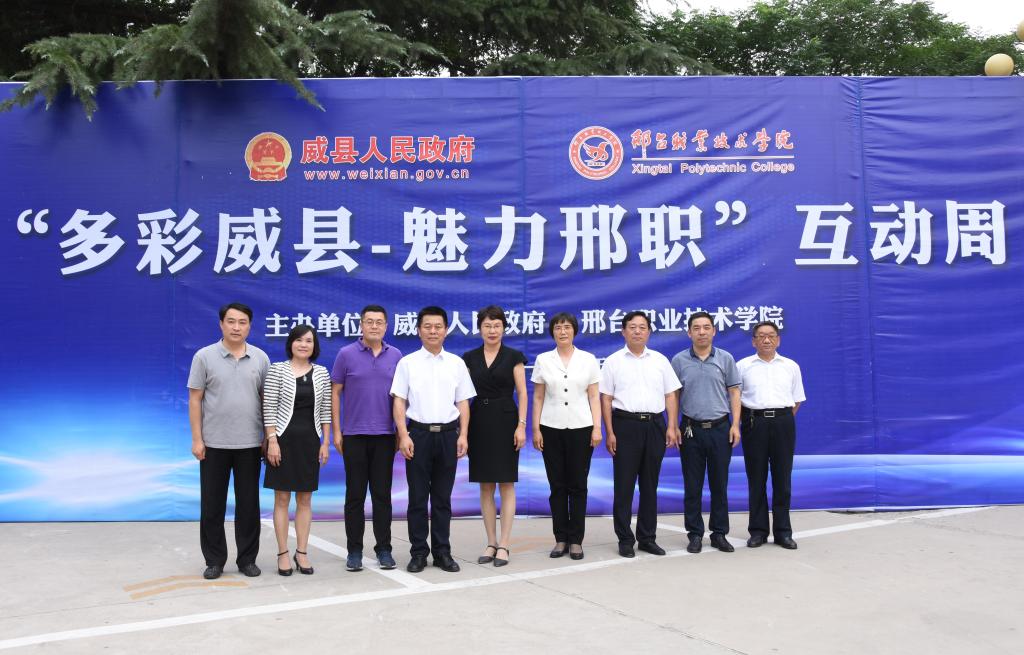 为推进政校企深度合作,进一步服务县域经济发展,6月26日,“多彩威县-魅力邢职”互动周在我院隆重启动。威县县委副书记、县长商黎英,副县长黄清宇、王炳明、孙立坤,我院党委书记刘彩琴、院长马东霄、副院长李贤彬、刘卫红等出席活动。威县发改局等部门负责人、媒体记者以及我院在校师生1000余人现场共同见证互动周的启动。仪式由刘卫红副院长主持。