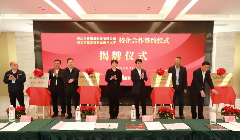 致辞结束后,韩光辉董事长与刘彩琴书记进行了校企合作签约。政校企三方领导共同为厨具产品联合研发实验室、大学生实习基地、产学研基地、工业设计中心揭牌。王文玉、韩光辉为best365机电工程系主任高英敏等6名教师颁发了“技术顾问”聘书。