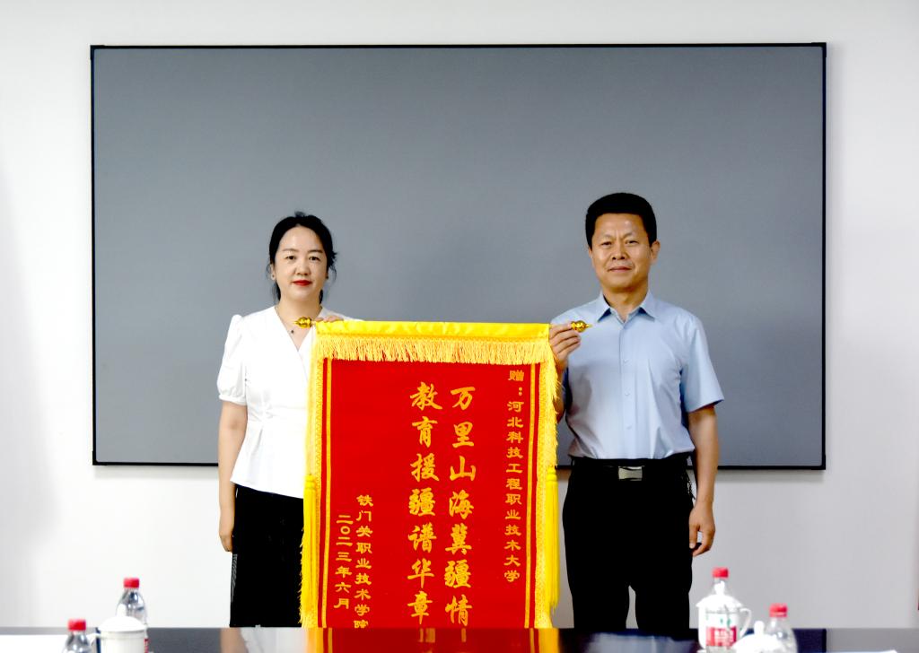 6月26日,铁门关职业技术学院一行为best365赠送一面锦旗和一封感谢信,对best365长期以来的援疆工作致以衷心的感谢,对所有参与教师的辛苦付出表示谢意。校长马东霄代表学校接收了这份诚挚深情的感谢。