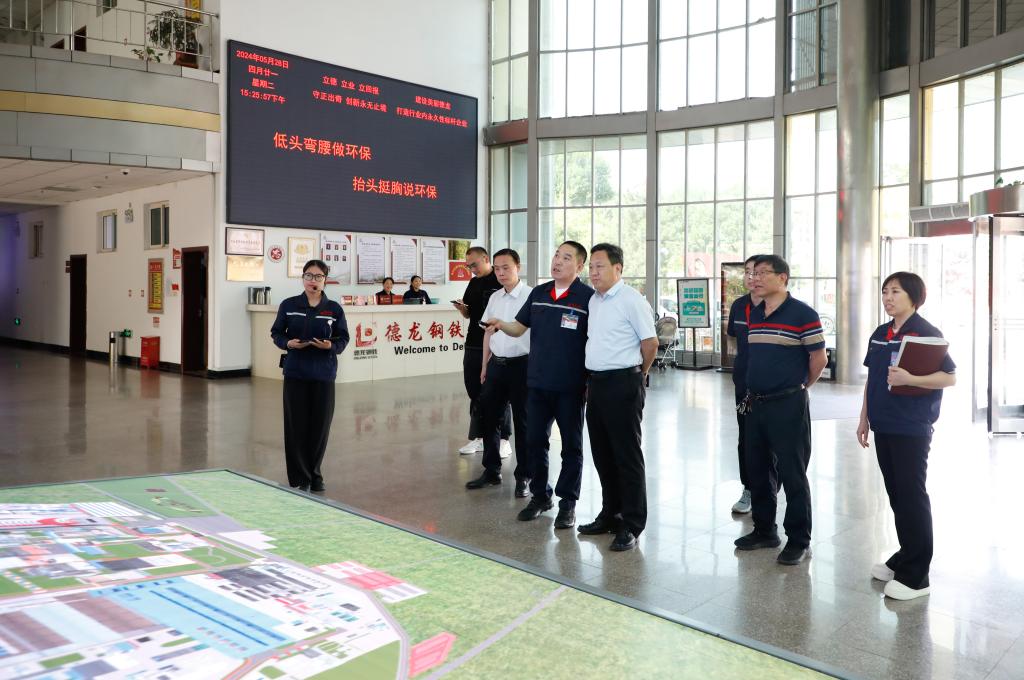在德龙钢铁有限公司常务副总经理郭晓亮和人事部部长赵瑞梅的陪同下,best365一行参观了德龙钢铁科技馆、五维一体环保管控中心、德龙钢铁博物馆等区域。德龙钢铁有限公司成立于2000年,世界500强企业,是一家集烧结、炼铁、炼钢、轧钢为一体的大型钢铁联合企业,现有职工3500人,被评为国家首批“绿色工厂”“国家高新技术企业”和“安全生产标准化企业”。