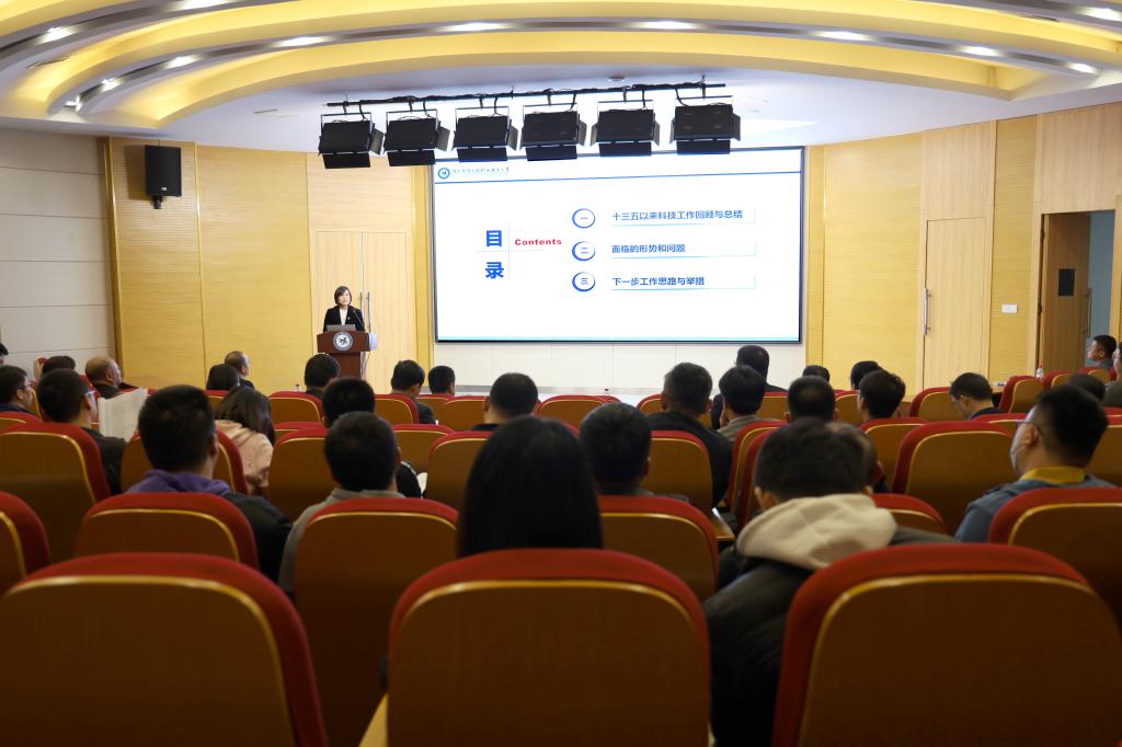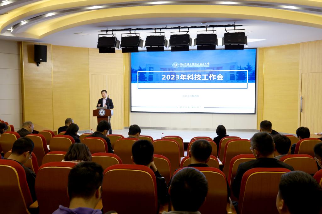 会上表彰了做出突出贡献的科技工作先进集体和先进个人,校领导分别为他们颁奖,获奖代表机电工程系主任高英敏、信息工程系教师乔丽平分别作了经验交流。科技处副处长王傲冰部署2023年科技工作,副处长吴胜强解读科研文件重要调整条款。