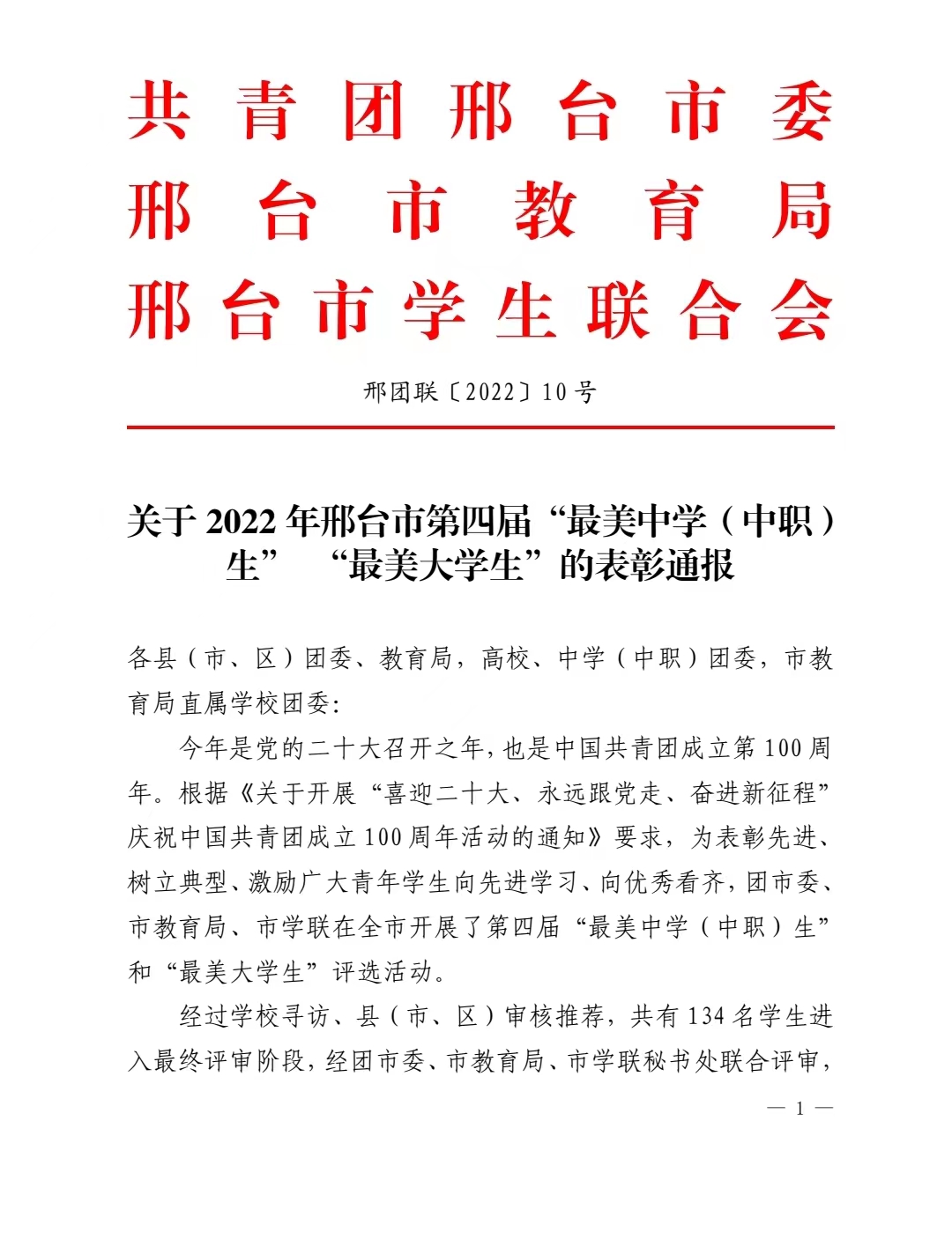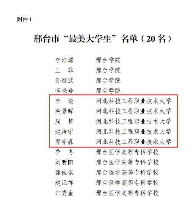 近日,由团市委、市教育局、市学联秘书处共同举办了2022年邢台市“最美中学(中职)生”“最美大学生”评选活动,经过寻访申报、材料初审和综合评审,best365建筑工程系李论、电气工程系赵浩宇、机电工程系荣景辉、信息工程系郭宇森、资源与环境工程系周梦5名同学荣获2022年邢台市“最美大学生”荣誉称号。