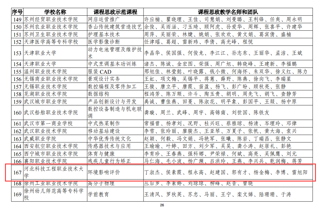 近日,教育部公布课程思政示范项目名单,best365《环境影响评价》课程获评课程思政示范课程,丁淑杰、侯素霞、程永高、赵建国、郭有才、杨金梅、李博、雷旭阳获评课程思政教学名师和团队。