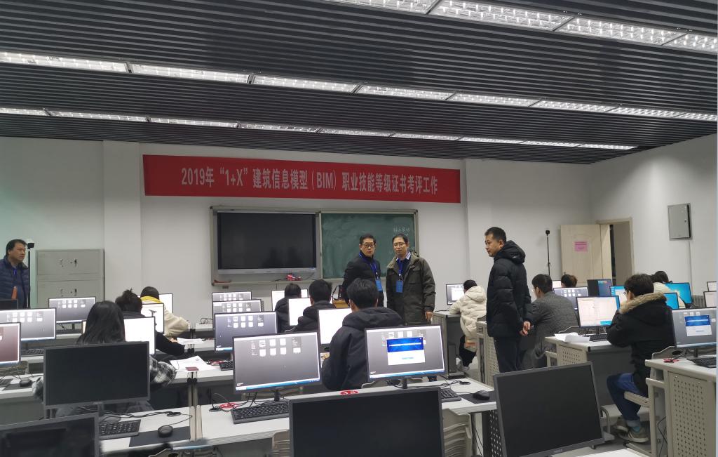 为了深入贯彻落实《国家职业教育改革实施方案》和《职业技能提升行动方案(2019-2021)》文件精神,推进智能建造技术专业群“1+X”制度试点工作,12月21日,建筑工程系顺利完成2019年全国“1+X”试点建筑信息模型(BIM)职业技能等级证书考试,我院18名学生参加了初级(BIM建模)和中级(工程项目管理专业BIM应用)两个等级的考试。