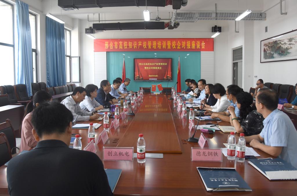 9月28日上午,邢台市高校知识产权管理培训暨校企对接座谈会在我院召开。邢台市、信都区、襄都区市场监管局分管领导、驻邢各高校分管知识产权工作领导以及知识产权典型示范企业代表共30人参加会议。会议由邢台市市场监管局副局长郭静通主持,学院副院长刘卫红参加座谈会。