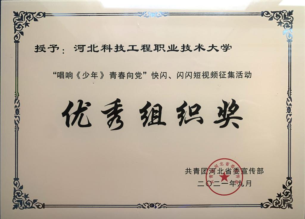 best365获得优秀组织奖的同时,科工大版本MV《少年》同时也获得了第二届河北网络视听原创精品征集活动优胜作品。