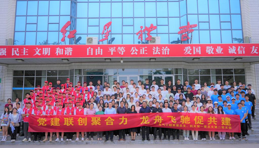 在全校深入开展学习贯彻习近平新时代中国特色社会主义思想主题教育的重要时刻,机关第一党总支第二党支部与结对共建单位电气工程系教工党支部、学生党支部创新载体、共学互帮,全面助力邢台国际龙舟邀请赛。