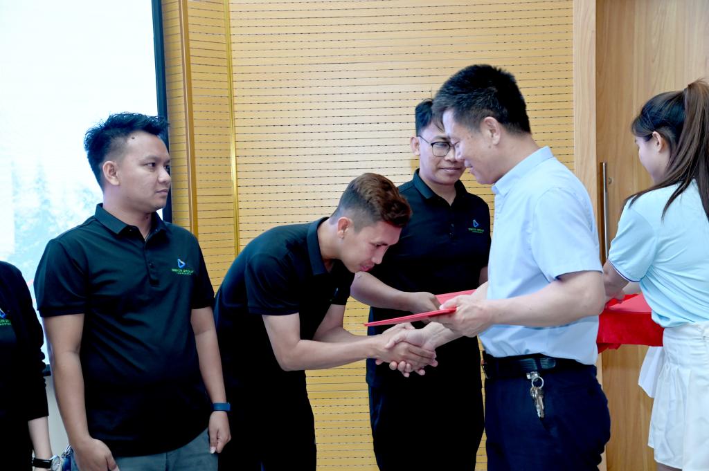 郭晓鹏代表德龙集团向best365悉心指导和辛苦付出的老师们致以诚挚的感谢和衷心的敬意。他表示,下一步集团要与学校建立更深入的战略合作关系,探索更丰富更全面的合作模式,共同打造印尼职业教育品牌,也为德龙钢铁集团总部发展战略提供人才培训基础。
