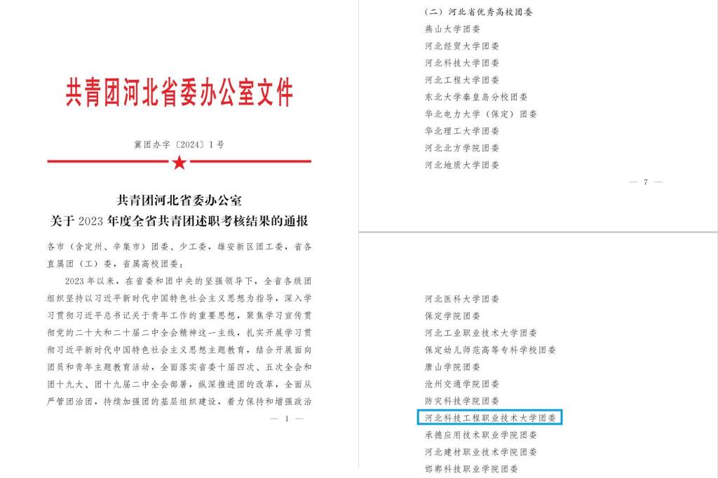 近日,共青团河北省委发布了《关于2023年度全省共青团述职考核结果的通报》,经过市级推荐、省级述评,学校团委荣获“河北省优秀高校团委”荣誉称号。