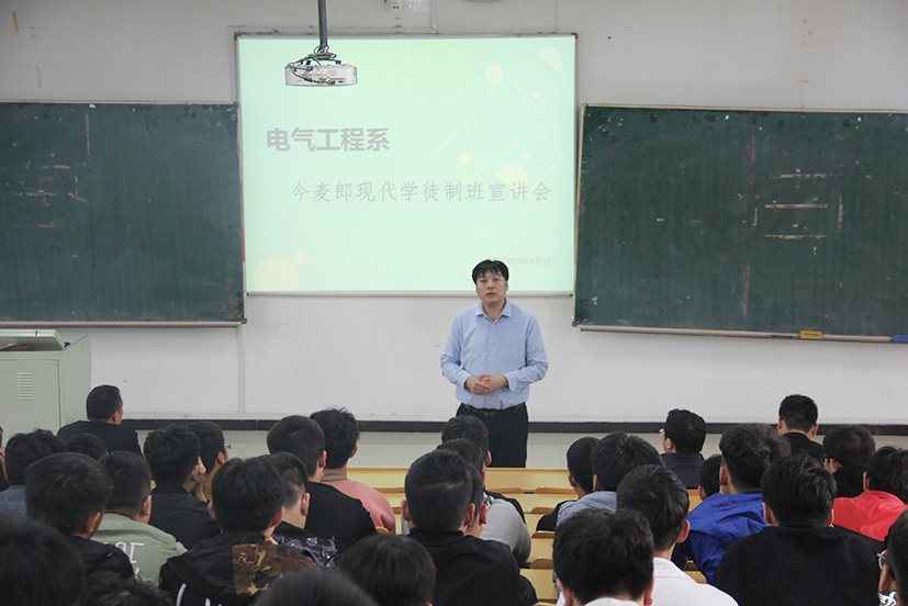 4月3日,电气工程系组织召开“今麦郎现代学徒制班”开班宣讲会,系党总支书记石磊、主任陈丽、副主任孔维功、今麦郎集团人力资源部经理单建永等领导及相关教师,18级电气自动化专业全体学生参加此次宣讲会。