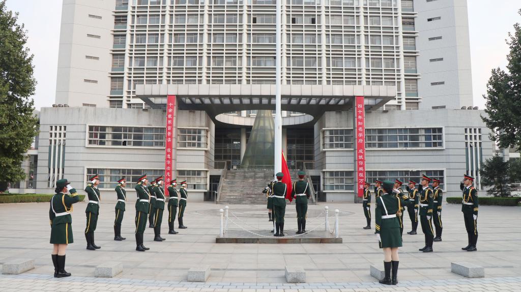 上午6时许,自发前来参加升旗仪式的师生在主教南广场集合。上午7时,升旗仪式正式开始,在全场师生的注目下,学院国旗护卫队迈着铿锵有力的步伐,护送鲜艳的国旗入场,在雄壮的国歌声中,五星红旗冉冉升起,迎风飘扬,现场师生齐声高唱,共同祝福我们伟大的祖国繁荣昌盛。
