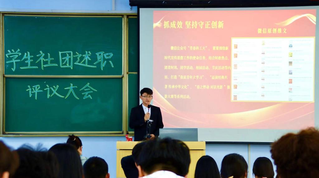 为深入学习贯彻习近平新时代中国特色社会主义思想,贯彻落实《高校学生社团建设管理办法》的工作要求,着力发挥科工大学生社团的育人功能,5月15日,学校团委在东校区主教学楼举办2024年学生社团述职评议大会。