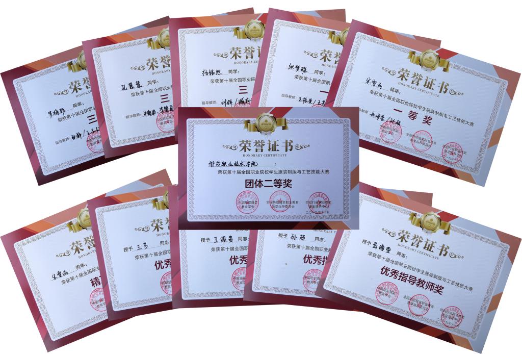 11月23日-24日,第十届全国职业院校学生制版与工艺技能大赛在成都举行。我院服装工程系选派的5人代表队最终荣获团体二等奖,2个一等奖,3个三等奖,1个精工细作单项奖,4个优秀指导教师奖多项荣誉。