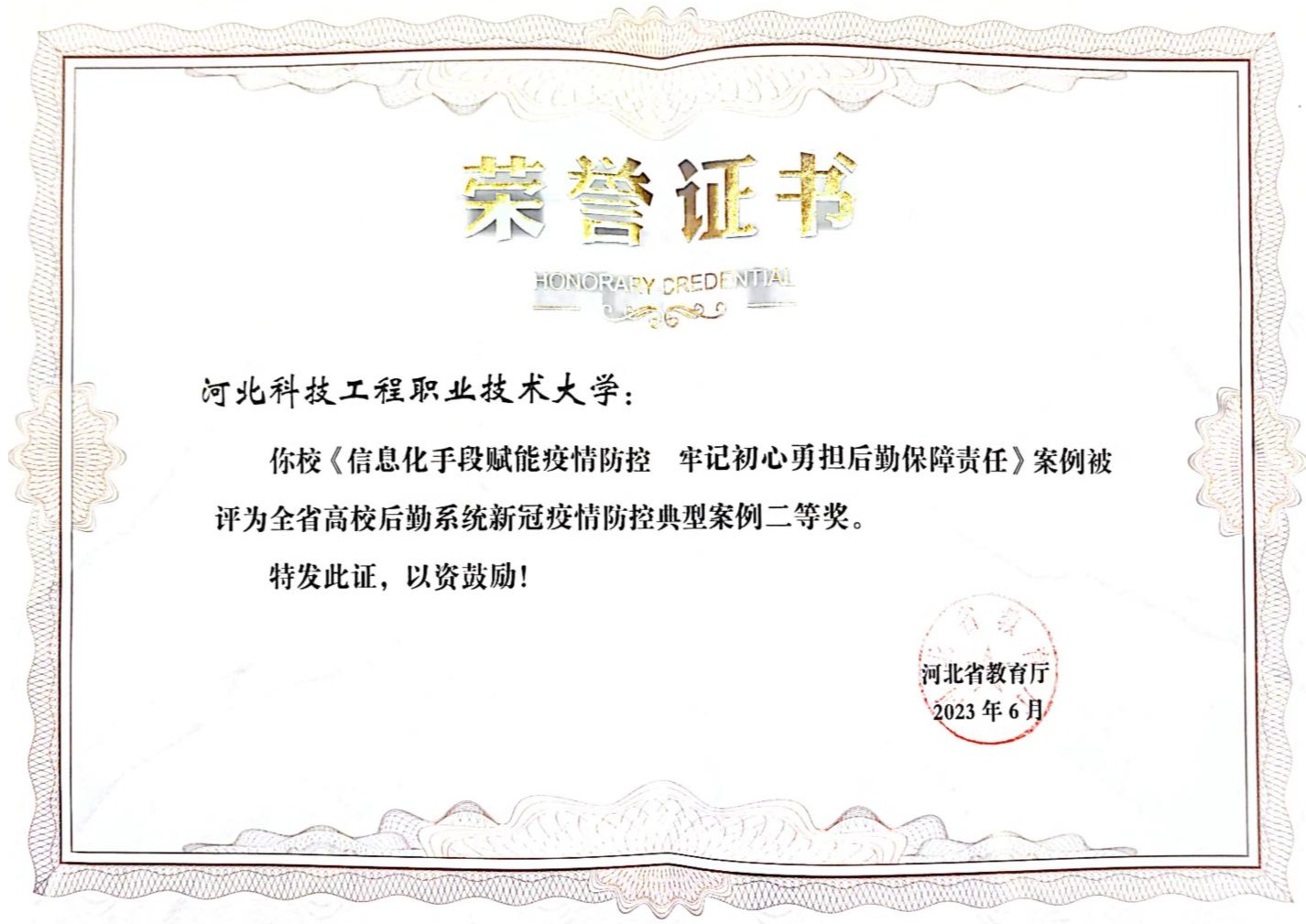 7月16日至18日,河北省高等教育学会后勤管理分会2023年年会暨后勤管理高质量发展论坛在张家口市沽源县召开。会议表彰了河北省高校后勤系统2022年度最美后勤人和2022年度河北省高校后勤工作先进集体和先进个人。best365申报的案例《信息化手段赋能疫情防控 牢记初心勇担后勤保障责任》荣获河北省高校后勤系统新冠疫情防控典型案例二等奖,best365后勤管理处教师李昊腾荣获河北高校后勤系统“2022年度最美后勤人”荣誉称号。