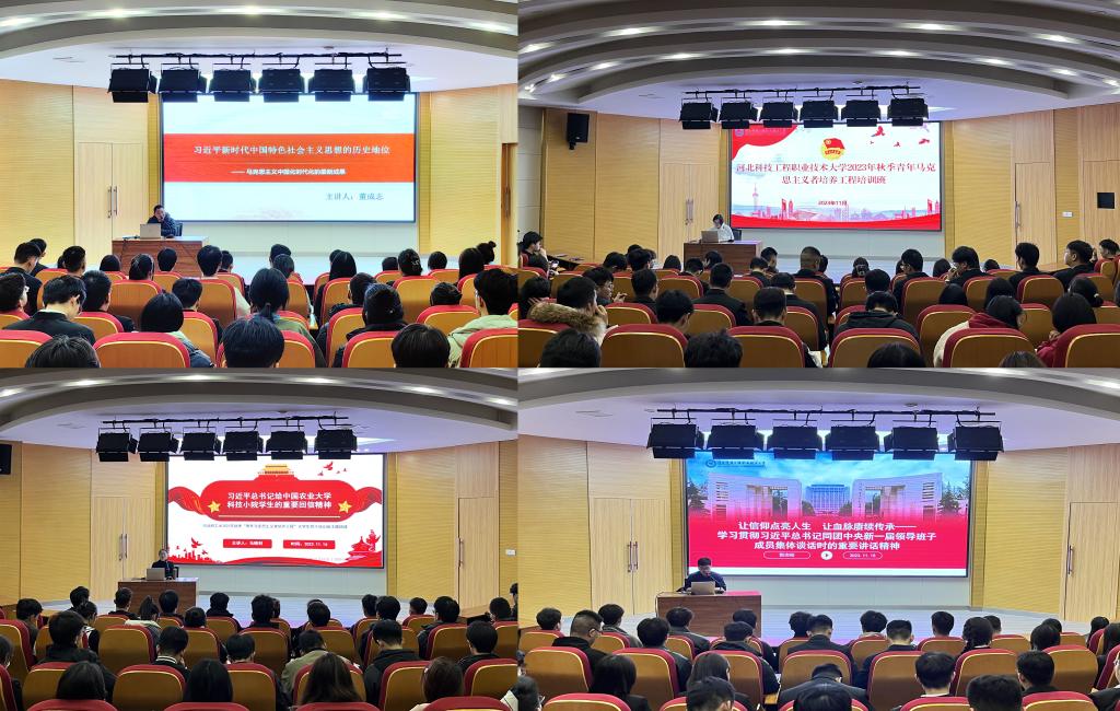 本次培训以“动员引领团员和青年认真学习领会习近平新时代中国特色社会主义思想”为内涵,着力提高学生对党的基本理论、基本路线、基本方略的领悟力,内容丰富,形式生动。马克思主义学院董成志老师以《习近平新时代中国特色社会主义思想的历史地位》为题为全体学员上了一堂生动精彩的主题团课;马克思主义学院王鑫老师结合学校实际,作了《党的二十大战略部署——以中国式现代化开创人类文明新形态》专题讲座;电气工程系团总支书记郭杰彬老师带领大家深入学习领会习近平总书记同团中央新一届领导班子成员集体谈话时的重要讲话精神;会计系辅导员李佳老师围绕高校学生骨干的角色定位、素质培养及案例启示为学员进行了详细解读;信息工程系团总支书记马晓利老师通过对习近平总书记给中国农业大学科技小院学生的重要回信精神的深入探讨,勉励全体学员为全面建设社会主义现代化国家贡献青春力量。经过结业考试,全体学员顺利通过考核。