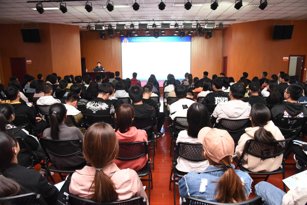 10月23日下午,学院学生工作处与邢台市公安局联合开展的大学生校园网络安全教育讲座在我院大学生活动中心举行。本次讲座由邢台市公安局网络安全保卫支队张国杰警官主讲,网络安全保卫支队队长李晓晖等警官及全院各系近200名学生参加了本次讲座。讲座由学生工作处副处长李磊主持。