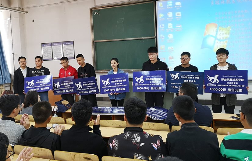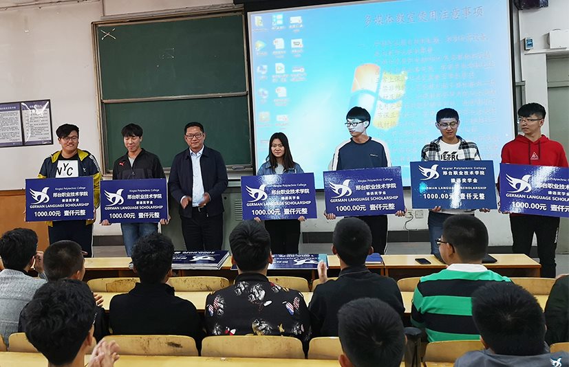 颁奖仪式上,温斌书记和魏伟主任分别为汽车电子技术专业和机械制造与自动化专业的同学颁发了德语奖学金及国际交流奖学金证书。分享交流会上,汽车工程系温书记分享了他德国之行的感想,今年赴德的学生讲述了切身体会,同学们表示受益良多并对德国游学之旅充满期待。随后,魏主任向大一新生介绍了中德国际交流合作项目的详细情况,让学生们对其有了更进一步的了解。