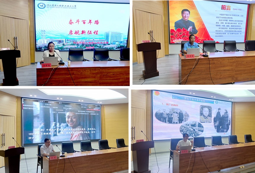 艺术系党总支副书记冯丽丽首先以《奋斗百年路 启航新征程》为题,围绕中国共产党诞生的背景、新民主主义革命道路、社会主义建设发展,和学员们一起重温中国共产党带领中华民族从站起来、富起来到强起来的伟大复兴历程。接着,河北机电职业技术学院马克思主义学院院长周景辉通过深入解读历史和人民选择中国共产党的过程原因、历史依据、实践逻辑,为同学们作了《中国共产党是历史和人民的选择》的精彩主题分享。随后,电气系党总支副书记黄涛作《坚定理想信念 锤炼意志品质》的专题报告,通过一段段革命先烈的传奇故事,激励广大团员青年用初心砥砺信仰,努力成为担当民族复兴大任的时代新人。最后,信息系团总支书记马晓利以《学习百年党史 汲取青春力量》为题为学员们上了一堂别开生面的主题团课。她号召同学们面对大是大非要敢于亮剑,面对矛盾要敢于迎难而上,做疾风劲草,当烈火真金。随后,四校青马学员代表们就培训内容依次进行了交流分享,夏胜广对全体青马学员提出了殷切期望,培训班全体学员顺利完成了结业考试。