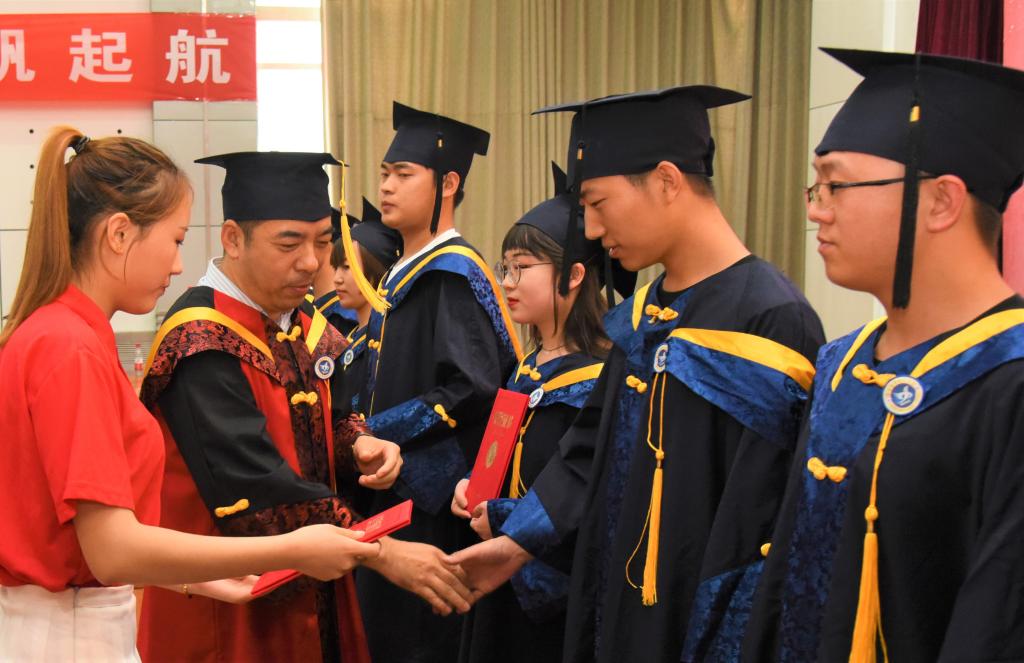 随后,副院长李贤彬宣读《关于表彰2019届河北省优秀毕业生的决定》,并为12名毕业生颁发了优秀毕业生证书。汽车工程系教师代表陈丽、机电工程系毕业生代表李博先后发言。典礼尾声,院长马东霄给毕业生颁发了毕业证书。毕业生与学院领导合影留念。
