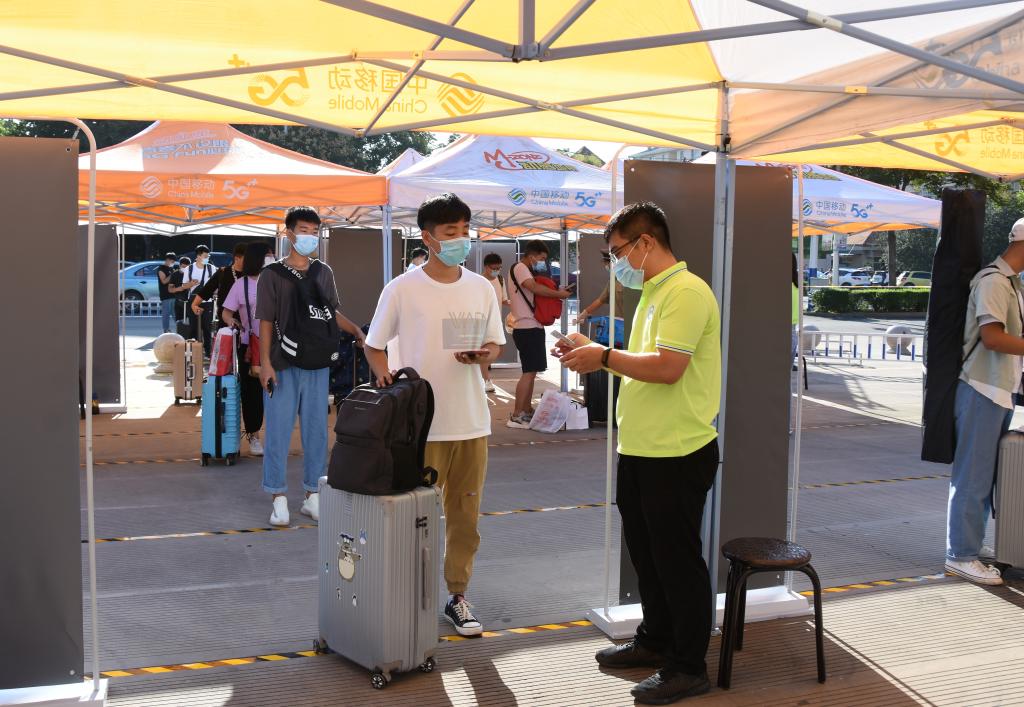 昨日刚下过雨的天气晴好,老师们早早在校门口等待着学生归来。警戒线外按照规定间隔站着手拿行李的学生,阳光照在他们的脸上更显灿烂。学院工作人员在校门口、学生公寓等地设置多个服务点,依次对每一位学生进行行李消毒、体温检测、身份及健康码核验、系部报到等流程。“欢迎回家!”老师们用充足的准备和贴心的服务迎接着每一位邢职学子。