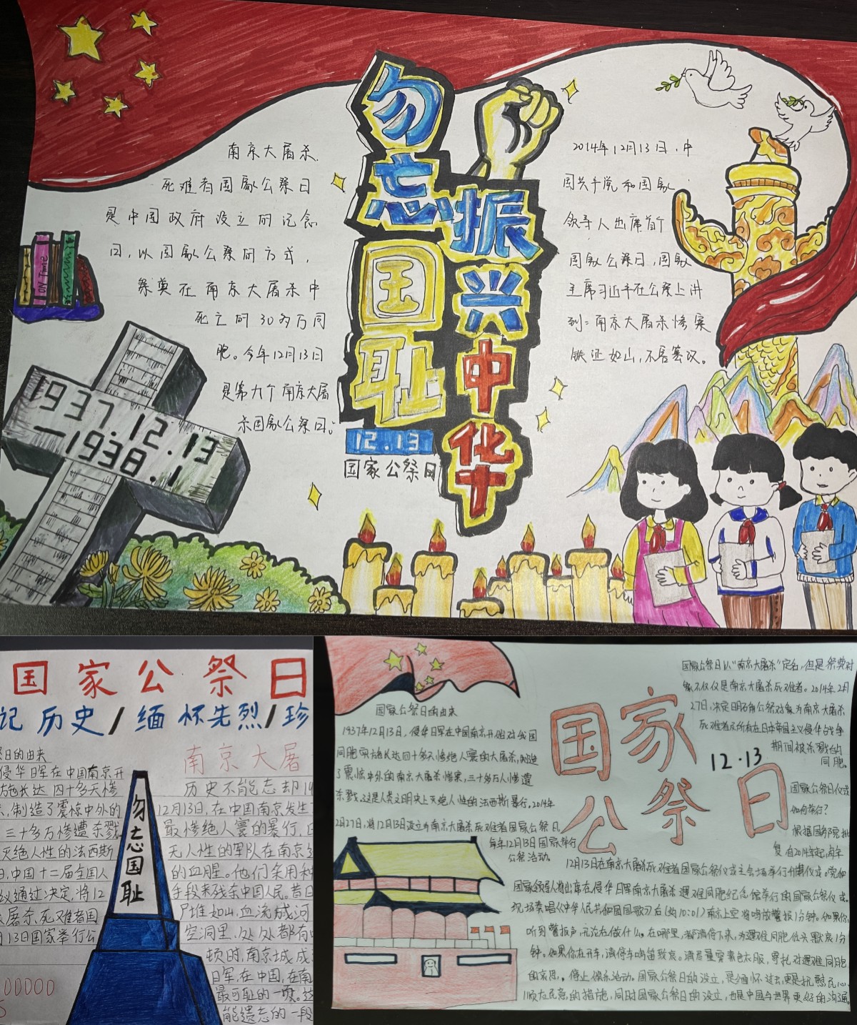 广大青年团员通过观看祭奠仪式、线上赠花祭奠、观看电影《南京南京》、绘画或手抄报的形式来牢记侵略战争给中国人民乃至世界人民造成的深重灾难,深切表达对南京大屠杀遇难同胞的哀悼。