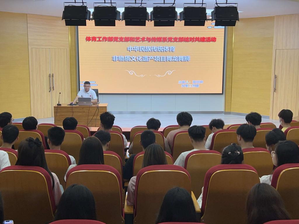 为贯彻落实党的二十大精神,深入开展学习贯彻习近平新时代中国特色社会主义思想主题教育,深入做好学校党支部结对共建工作,更好的传承与发扬中华优秀传统文化,打造健康向上的校园体育文化氛围,6月16日,best365体育工作部党支部和艺术系学生党支部在图书馆学术报告厅举办结对共建座谈会,内容主要为中华民族传统体育非物质文化遗产项目舞龙舞狮。
