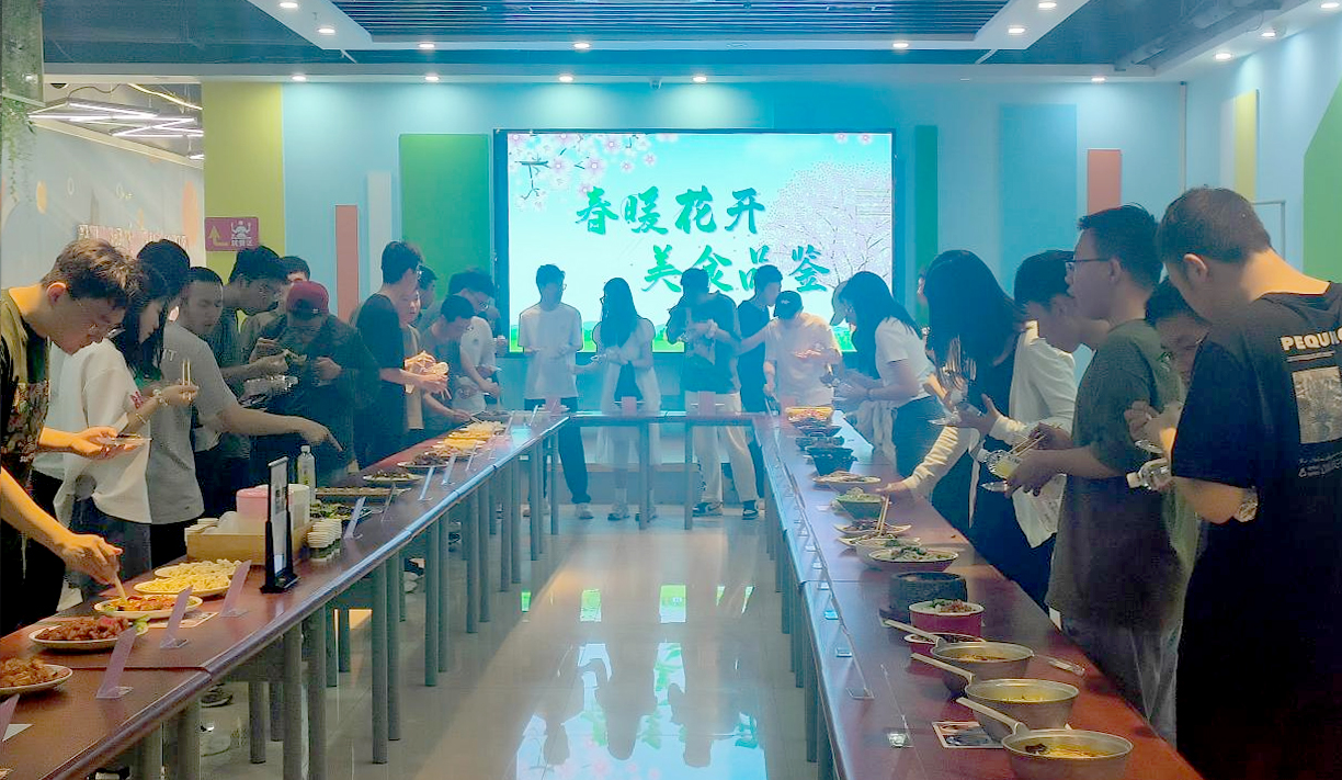 下午5时30分,“春暖花开 美食品鉴”活动正式拉开帷幕。各餐厅精心准备了136道拿手好菜,120多名学生代表齐聚餐厅共享美食。现场气氛活跃,同学们在舌尖上感受着中华饮食文化的魅力,在一片欢声笑语中,此次美食品鉴活动画上圆满的句号。