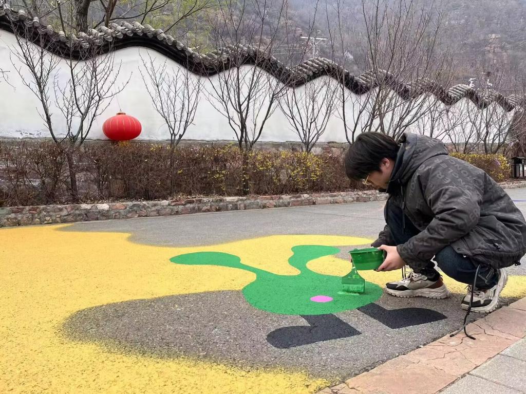 3月18号,艺术与传媒系环艺专业教师戴杰带领部分学生前往信都区白岸乡前坪村,在紫金山下进行写生。学生们沉浸于秀美的自然生态景观中,在老师的指导下,运用学习过的美术知识,主用丙烯颜料调色、上色,在通往紫金山的公路上,涂鸦形形色色的卡通人物、构图一幅幅关于生态保护的美丽画卷,喷漆出了一条艺术色彩浓厚的独特公路。