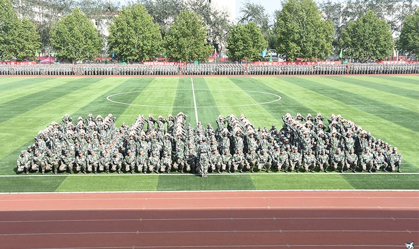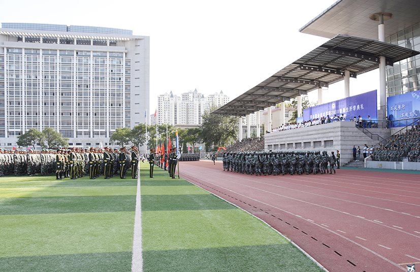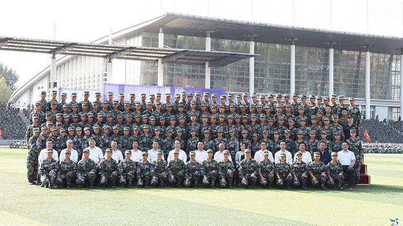 开学典礼在庄重喜庆的气氛中闭幕。随后,学院领导与全体军训教官合影留念。