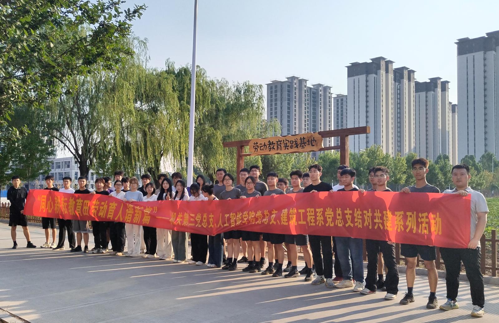 这是机关第三党总支联合人工智能学院党总支、建筑工程系党总支共同举办的“同心耕耘教育田 劳动育人谱新篇”结对共建活动。师生们以劳动教育田园课堂为平台,参与蔬菜种植等实践活动,通过亲手种植的过程,体验劳动的艰辛与乐趣。不少学生纷纷表示:“在劳动教育实践中,我们不仅掌握了蔬菜种植的基本技能,更深刻领悟了劳动的价值与意义。”