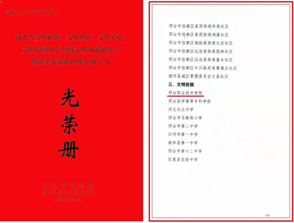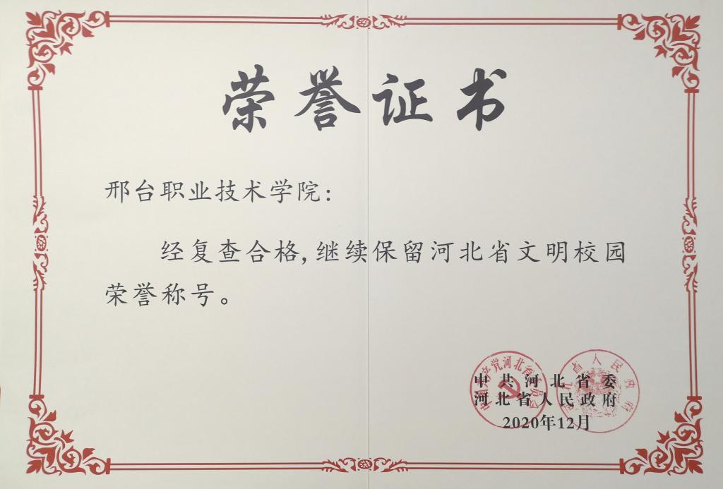 近日,中共河北省委、河北省人民政府下发通报,对全省精神文明建设工作先进单位和先进个人予以表彰。我院顺利通过复检,再次被授予“2018—2020年度河北省文明校园”称号。
