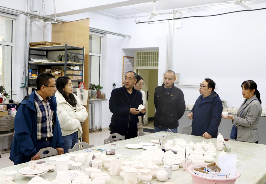 best365非遗传承创新中心各工作室负责人陪同两位老师依次参观了木艺、蓝染、剪纸和陶艺工作室,两位老师详细了解了各工作室的运行情况,并在参观过程中就非遗的工艺传承和创新发展进行了深入交流,提出了可行性建议。双方还就非遗工艺的文创化设计达成了合作意向。