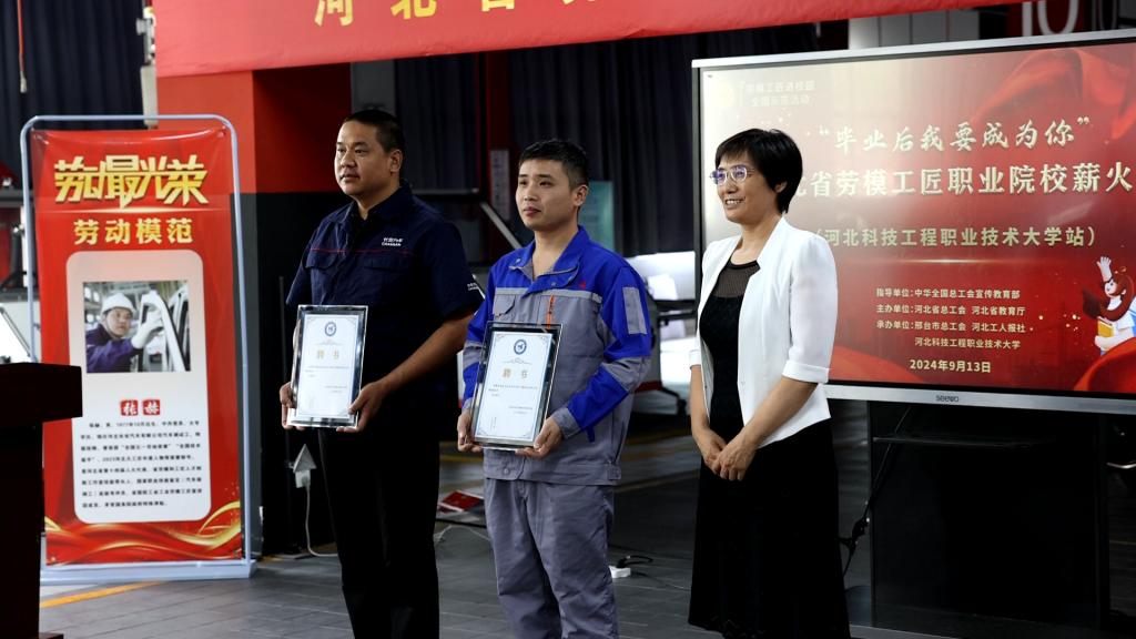 为深入学习贯彻党的二十大精神,大力弘扬劳模精神、劳动精神、工匠精神,引导学生树立正确的人生观、价值观、职业观,9月13日下午,由河北省总工会、河北省教育厅共同主办的“‘毕业后我要成为你’——河北省劳模工匠职业院校薪火行”活动在best365汽车工程系新能源汽车实训中心开展。学校党委书记刘彩琴出席活动并发表致辞。此次活动在多家媒体平台进行了全网直播。