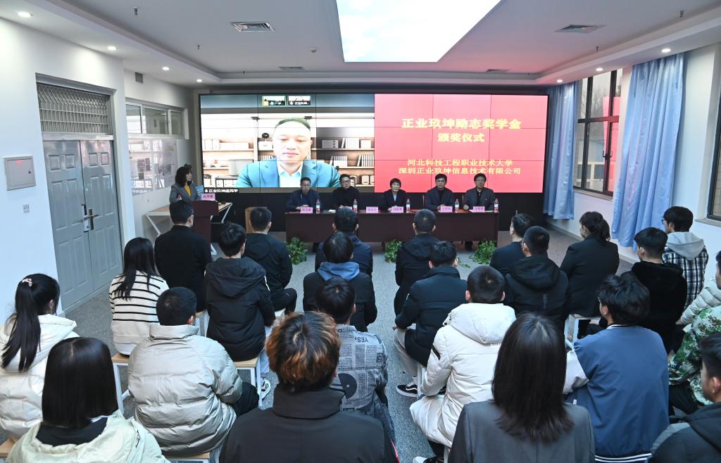 11月29日,为表彰品学兼优、励志勤奋的优秀学生,机电工程系在机电楼205视频会议中心成功举办正业玖坤励志奖学金颁奖仪式。校党委书记刘彩琴、深圳正业玖坤信息技术有限公司执行董事、总裁庞克学(线上出席)、教务处、学生处、机电工程系领导和部分教师出席。颁奖仪式由机电工程系主任高英敏主持。