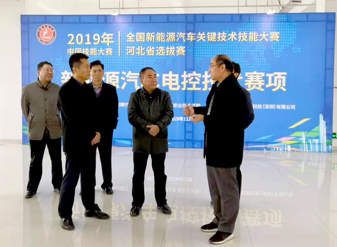 11月7日至9日,2019年中国技能大赛——全国新能源汽车关键技术技能大赛河北省选拔赛在我院汽车工程系举行,本次大赛由河北省人力资源和社会保障厅主办、我院承办。河北省人力资源和社会保障厅职业能力建设处处长赵增印、副处长巩世剑、河北省职业技能鉴定中心副主任杨玉华、学院院长马东霄、教务处处长张国勋等对赛点进行了巡视和督导。