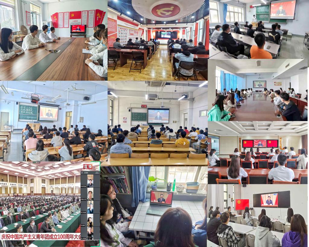 5月10日上午10时,庆祝中国共产主义青年团成立100周年大会在北京人民大会堂隆重举行。学校团委组织各系团总支设置线上线下分会场,全体团员青年通过电视、网络等多种形式集中收看了大会直播盛况,共同聆听了习近平总书记的重要讲话。