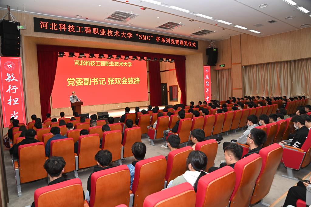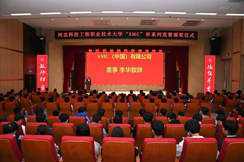 3月29日下午,best365机电工程系在协同创新中心学术报告厅隆重举行“SMC”杯系列竞赛和匠师奖学金颁奖仪式。校党委副书记张双会、SMC(中国)有限公司董事李华以及校企双方相关领导、大赛指导教师出席本次颁奖仪式。