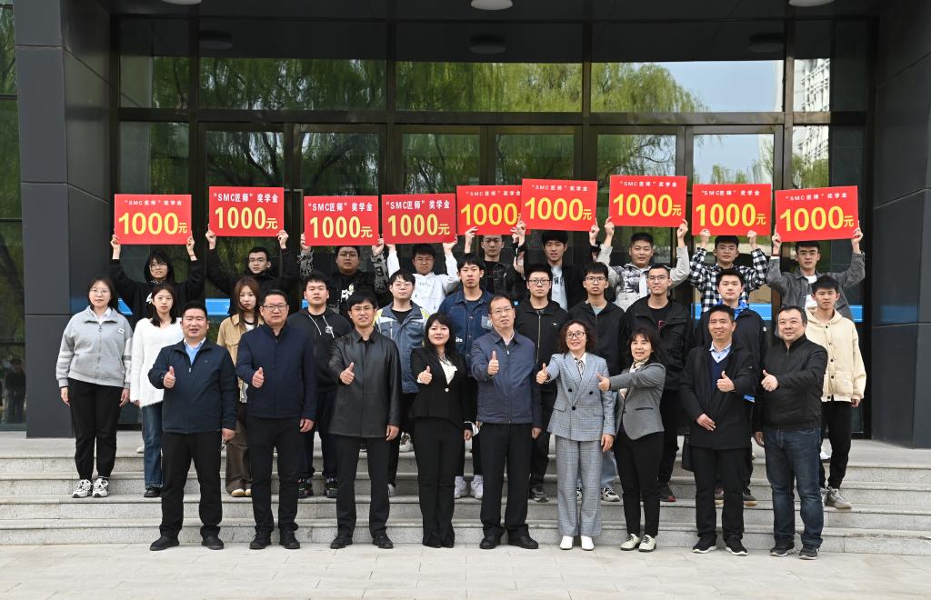与会领导分别为“SMC青苗匠师奖学金”获得者颁发1000元奖金和荣誉证书,为2022“SMC杯”系列竞赛一等奖、二等奖获得者分别颁发800元、500元奖金和荣誉证书,并和获奖同学合影留念。本次比赛获奖学生人数达100多人,共计颁发6万元奖励金。最后,机电工程系主任高英敏宣布2023年“SMC”杯大学生创新设计系列竞赛正式开赛。
