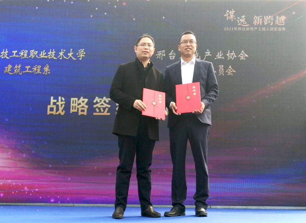 3月27日,学院建筑工程系与邢台房地产协会工程专业委员会签订战略合作协议。