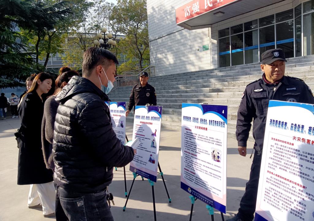 广泛宣传,营造集体共学氛围。活动期间,通过消防安全承诺横幅签名、消防知识问答、发放消防安全宣传单、播放图文及提示警示信息等方式为广大师生员工科普消防知识。各系部纷纷组建校园消防安全宣传志愿服务队,在主题班会中分享消防安全知识,推动师生员工关注消防、学习消防、参与消防的积极性。