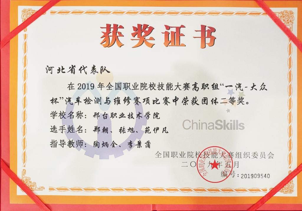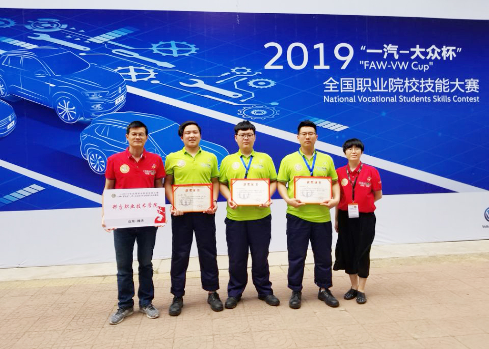 2019年全国职业院校技能大赛高职组“一汽-大众杯”汽车检测与维修赛项决赛于5月27日在山东交通职业学院圆满落幕。我院汽车工程系派出由于万海副主任带队、陶炳全和李景蒲担任指导老师,郑朝、张旭、苑伊凡3名同学组成的代表队参加本次比赛。我院学子在大赛中荣获团体二等奖。