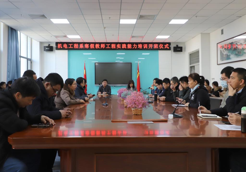 12月27日上午,机电工程系在机电楼304举行开班仪式,系主任高英敏介绍了本次培训的目的、内容、时间和要求,鼓励全体教师认真对待,争取取得良好的培训效果。系党总支书记马雪芳对培训提出要求,他希望每位教师都能上得课堂进得工厂,实现实践和理论并重发展。