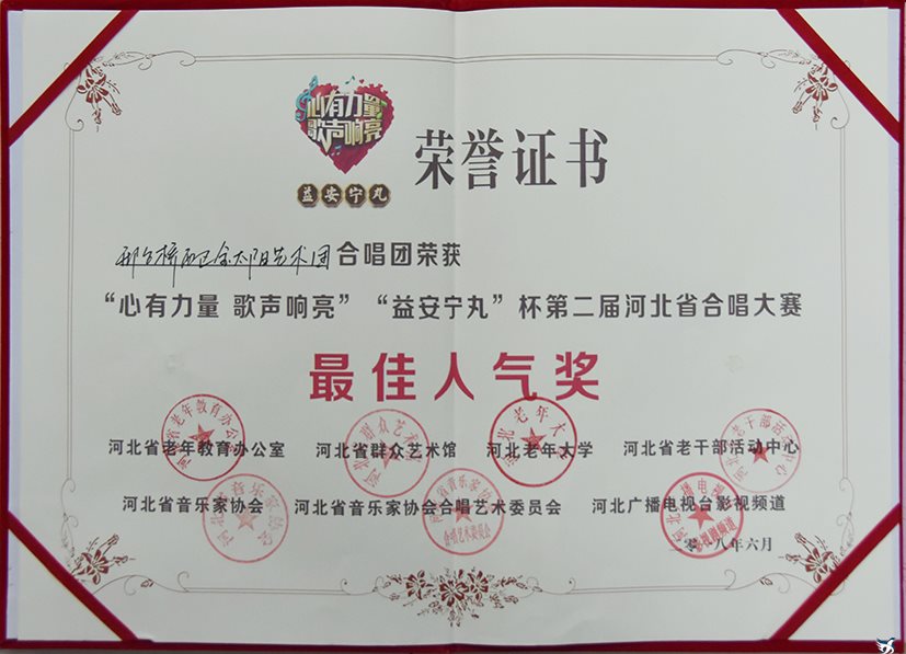 6月24日,我院社区服务的“金太阳”艺术团一行53人,参加“益安宁杯”河北省合唱决赛荣获三等奖和最佳人气奖两个奖项,奖金6000元,学院社区教育培训服务再创佳绩。